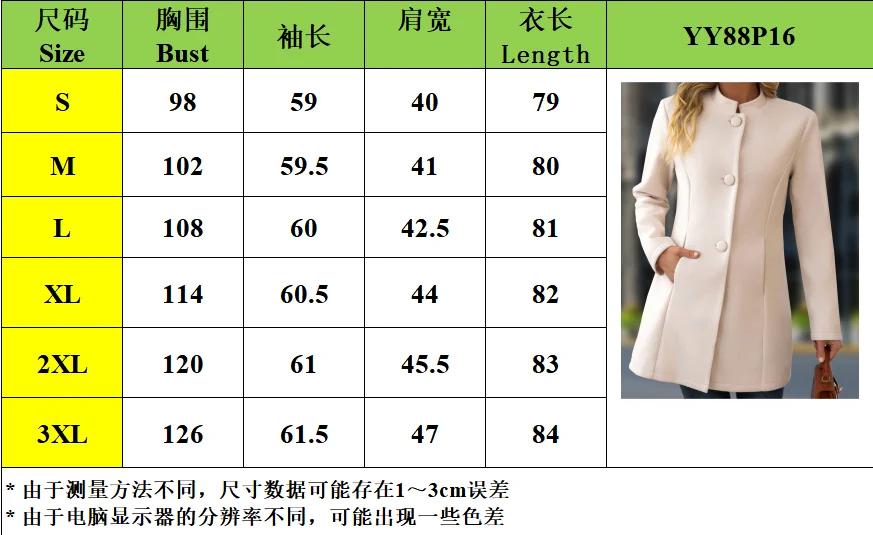 SPECIFICATIONSAge: JuniorBrand Name: NoEnName_NullCN: GuangdongChoice: yesClosure Type: Single BreastedClothing Length: X-LongCraft of Weaving: TattingDecoration: ButtonGender: WomenHigh-concerned chemical: NoneMaterial: POLYESTERMaterial Composition: 100%Origin: Mainland ChinaOuterwear Type: Wool & BlendsPattern Type: SolidSeason: Autumn/WinterStyle: CasualThickness: Thicksize_info: {"sizeInfoList":[{"length":{"cm":"40","inch":"15.75"},"size":"S","vid":100014064},{"length":{"cm":"41","inch":"16.14"},"size":"M","vid":361386},{"length":{"cm":"43","inch":"16.93"},"size":"L","vid":361385},{"length":{"cm":"44","inch":"17.32"},"size":"XL","vid":100014065},{"length":{"cm":"46","inch":"18.11"},"size":"XXL","vid":4182},{"length":{"cm":"47","inch":"18.50"},"size":"XXXL","vid":4183}]}whether full opening: Yes