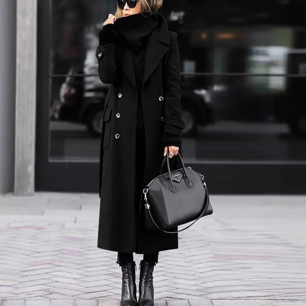 Autumn and Winter Temperament Commuter Suit Collar Double-Breasted Long Woolen Coat Trench Coat for Women Autumn and Winter Temperament Commuter Suit Collar Double-Breasted Long Woolen Coat Trench Coat for Women