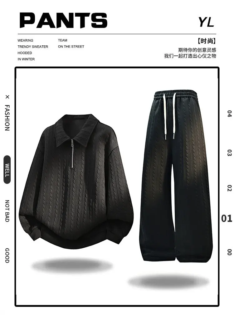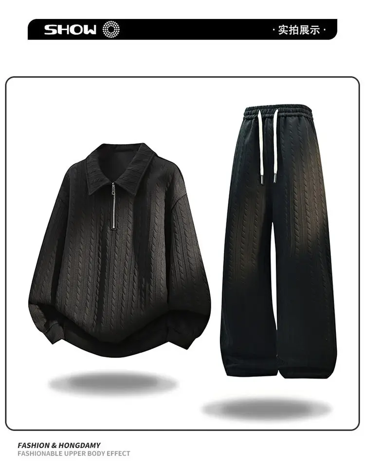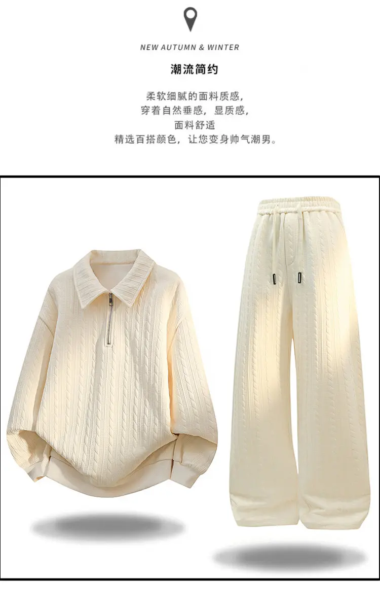 Men Autumn Casual Sportswear Set Two Piece Soft Comfort Fabric Outdoor Activewear Collar Half Zip Hoodie Elastic Waist Sweatpant Men Autumn Casual Sportswear Set Two Piece Soft Comfort Fabric Outdoor Activewear Collar Half Zip Hoodie Elastic Waist Sweatpant